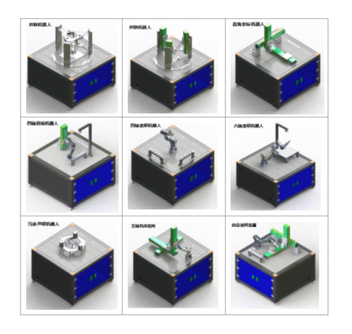 n通过模块化设计的机械连接件,可以自由组合多种典型机械结构,便于拆装实践。平台支持直角坐标机器人、串联机械臂、并联机器人、XY平台等典型机器人结构的组装,满足不同应用场景的需求;
