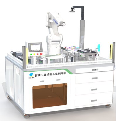 智能工业机器人实训平台以工业机器人与机器视觉为核心,以智能制造为抓手,采用可组合式设计,整合了多种实训单元,设计上预留了接驳物料平台,满足工业机器人技术、机器视觉技术、PLC控制技术,智能制造技术,RFID技术、虚拟调试技术、工业互联网技术等方面的教学需求